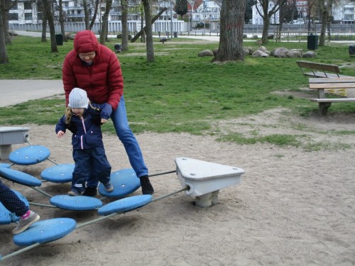 Vom Spielplatz aus ist YM Wisdom nur als Kastenwanderung jenseits HolzMüllEventCenter in Vorbeifahrt zu sehen.