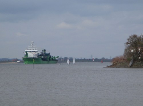 Scheldt River fährt gegenwärtig seewärts bis nach Brokdorf, verklappt dort seine Ladung. Daraufhin naht Saugbagger HAM 316, saugt seinerseits und verklappt seine Ladung in der Elbmündung. Das verstehe, wer will – als Steuerzahler muss man`s nur zahlen.