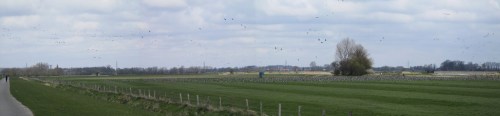 Eine der Schachblumenwiesen, wie erwartet. Hier ist doch ein härteres Kleinklima als am Schulauer Hafen. Stängel und Blütenknopsen rauen gerade mal die Wiese etwas auf.
