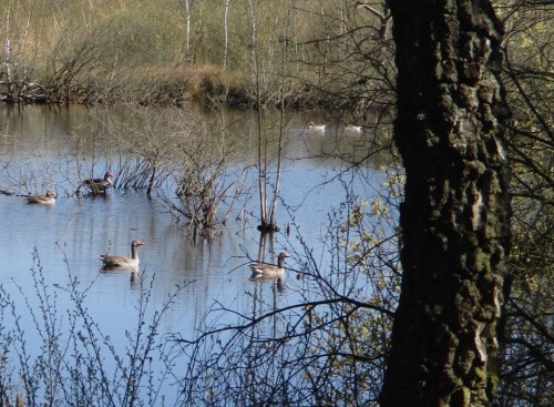 Ich habe einen Schwenk angehängt, Holmer Grenzweg-, Seemoorweg-Tour. Graugänse auf der Butterbargsmoor-Blänke.