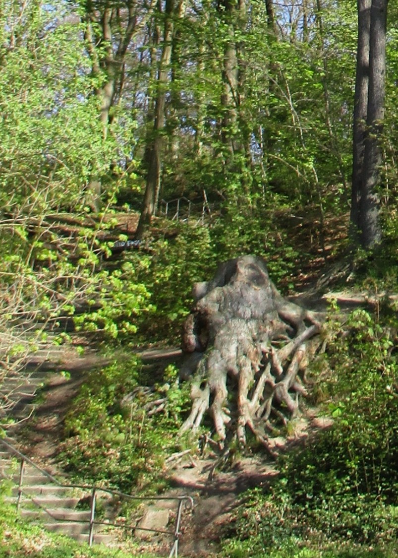 Wenn ich in der Jahresentwicklung dieses Haufens mal wieder eine bemalte Gartenpforte oder Ähnliches sehe, werde ich das Zuständigen melden – hätte nicht vermutet, dass solch Rumpelhaufen zu Ostern angesteckt würde. (Vielleicht unterschätze ich weiter meine kindliche Naivität.)