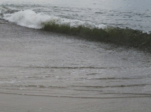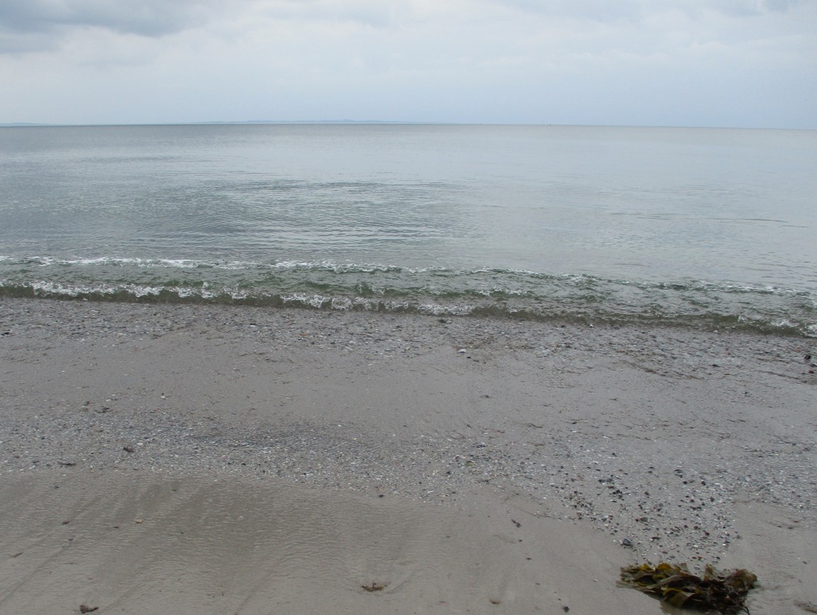 Bei ruhiger Ostsee entsteht am Ufer, ohne dass ein Auslöser zu bemerken wäre, intensiver Sog, der dann von Wellen überrollt wird.