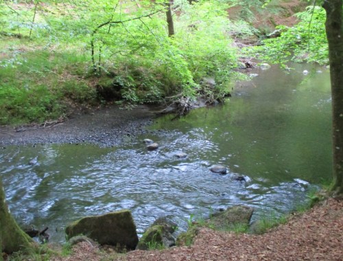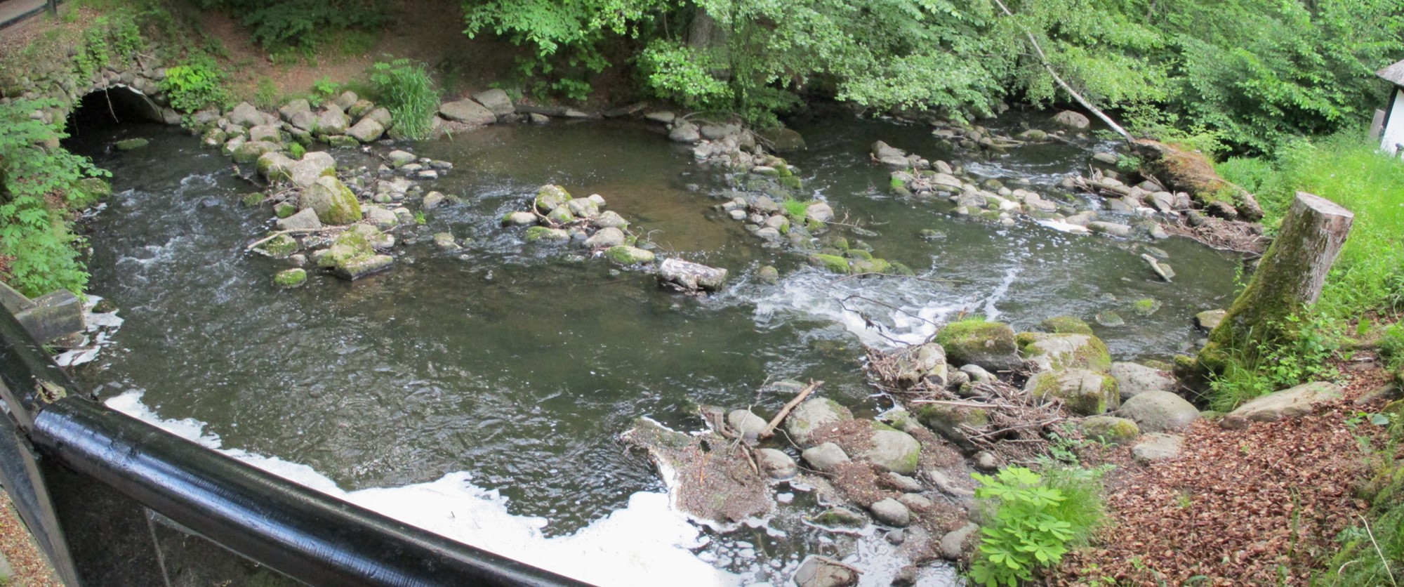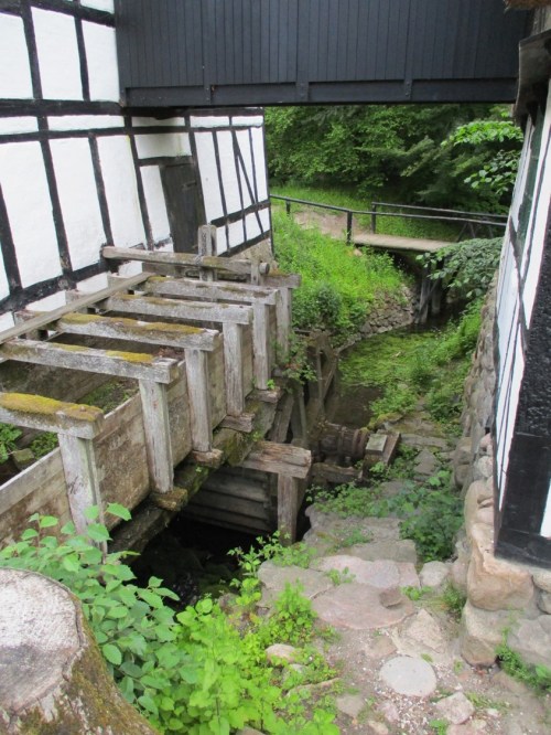 Aufgrund des starken Gefälles konnten trotz des nur 12 km kurzen Bachlaufs in der Vergangenheit 3 Wassermühlen unseren Vorfahren Energie fürs Getreidemahlen, Stoff- und anderes zerstampfen und weitere Anwendungen liefern. [Etwas Ähnliches ist in Hamburg an der Wandse zu bestaunen. Nein, da flossen – mal abgesehen von den Gletscherwässern unmittelbar am Ende der letzten Eiszeit – keine großen Wassermassen, wie falsch in mancher Broschüre zu lesen ist. Die Altvorderen stauten Mühlteiche auf, deren Wasser zum Arbeiten schwallartig – oft genug sehr zum Leidwesen des unterliegenden Müllers – abgelassen wurde.]