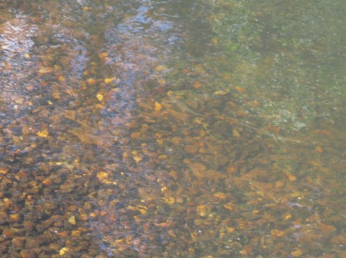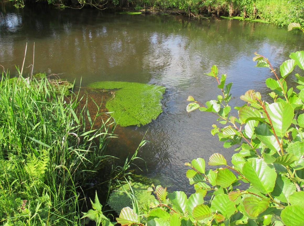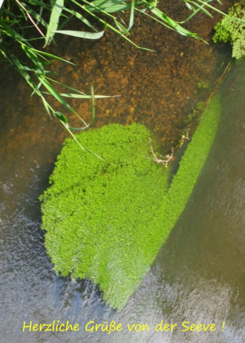 Der Bach sieht – bis auf den wirkenden Maximumfaktor Licht (Fadenalgen-Massen!!) – sehr gut aus. Hier gilt das vorher Geschriebene zum Thema „Bäume“.
