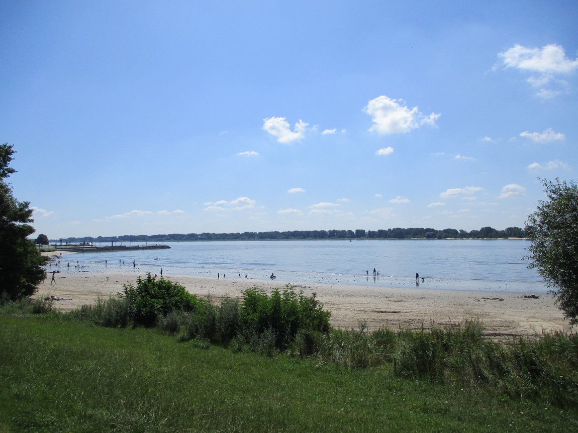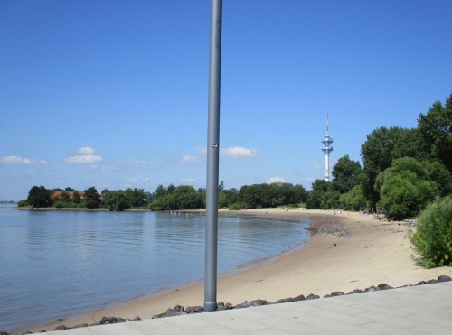 Blick über Wedels „Sandstrand“ Richtung Willkommhöft.