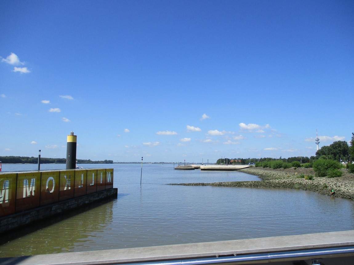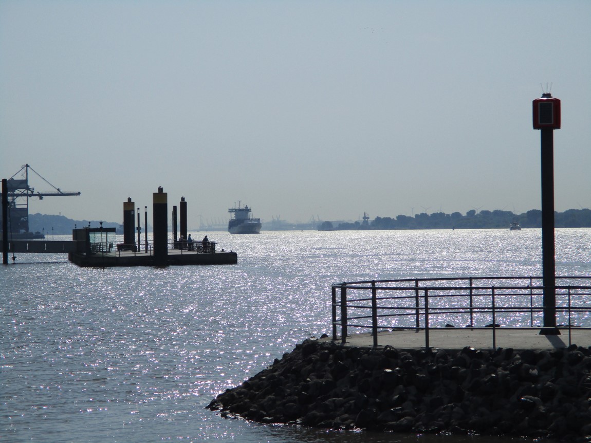 Willkommhöft, Blick seewärts – kein Großschiff.