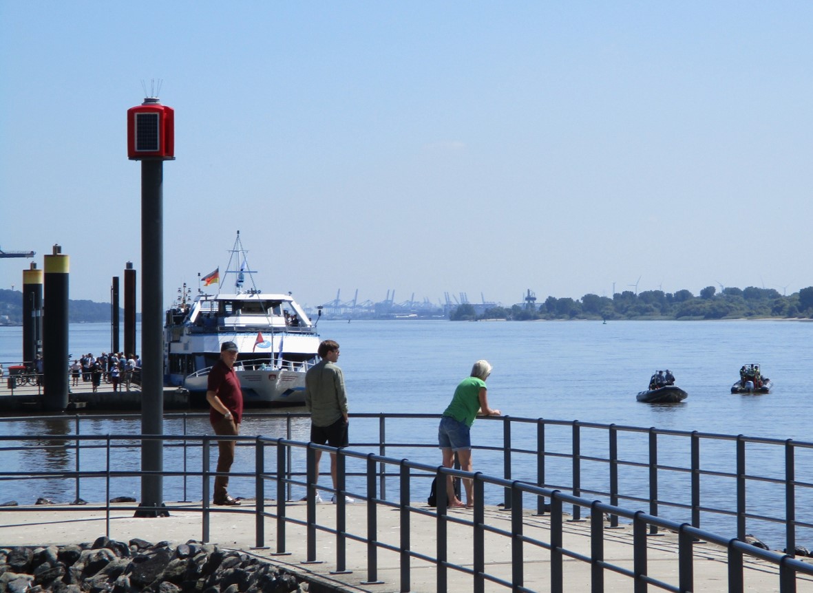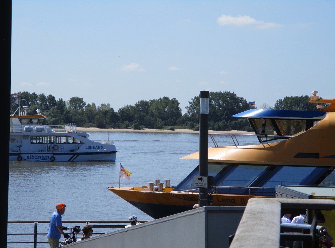 Man fragt sich, wieso das eine oder das andere Schiff nicht den gut bewachten Anleger im Schulauer Hafen nutzen kann / darf ? !