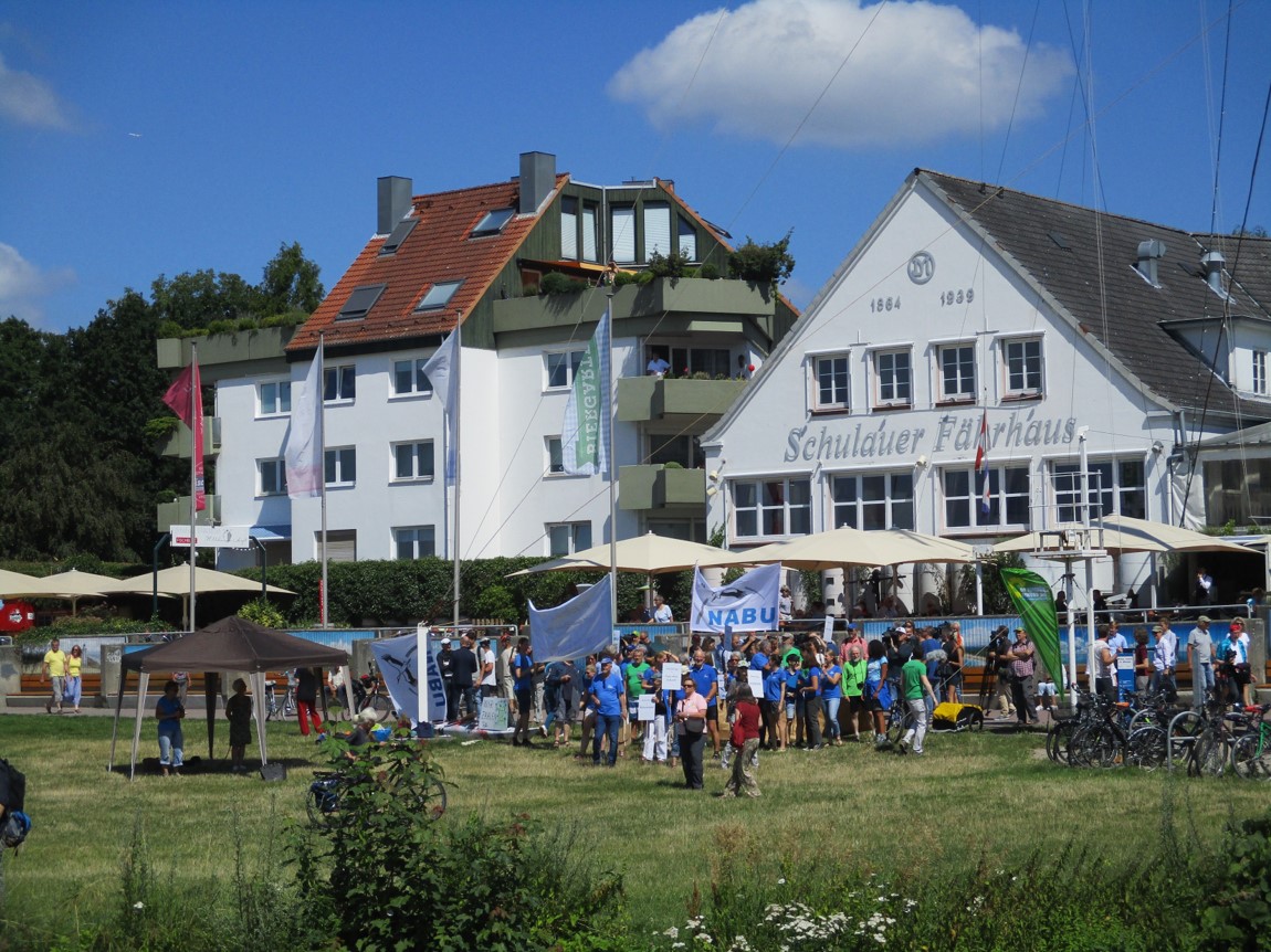 Da kommen die Demonstranten vor dem Schulauer Fährhaus, bunt wie auf einer New Orleans-Beerdigung, meiner Einstellung näher.