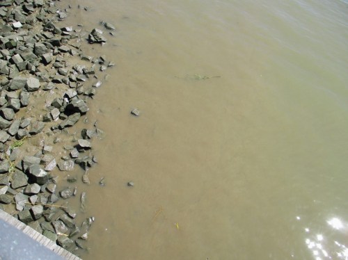 Willkommhöft, Blick Richtung Hamburg – kein Großschiff.