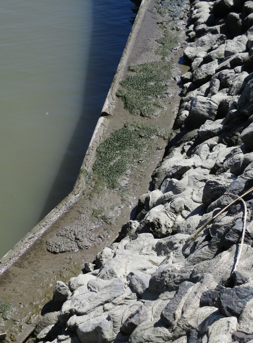 Oberkante Spundwand im Schulauer Hafen. Nicht zu Unrecht skandieren die Demonstranten „Herr Scheuer, was soll der Quatsch? Wir ha`m hier nur den Matsch!“