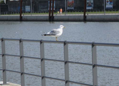 Nein, ist er nicht. Ich treffe ihn und einige wenige Begleiter an der Westmole / Übergang zum Kopf des Schulauer Hafens.
