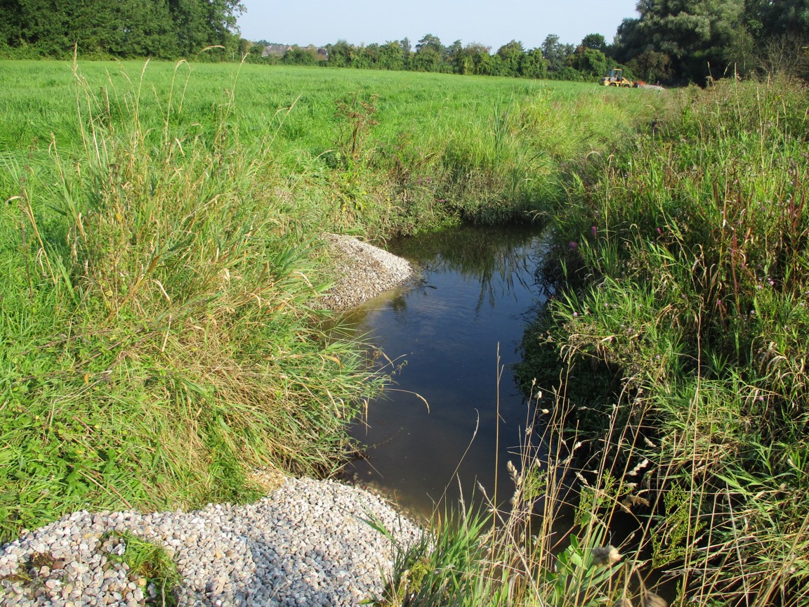 Ein schönes Beispiel, wie aus einem stillen, überbreiten und übertiefen Kanal ein wieder sicht- und hörbarer Bach werden kann.