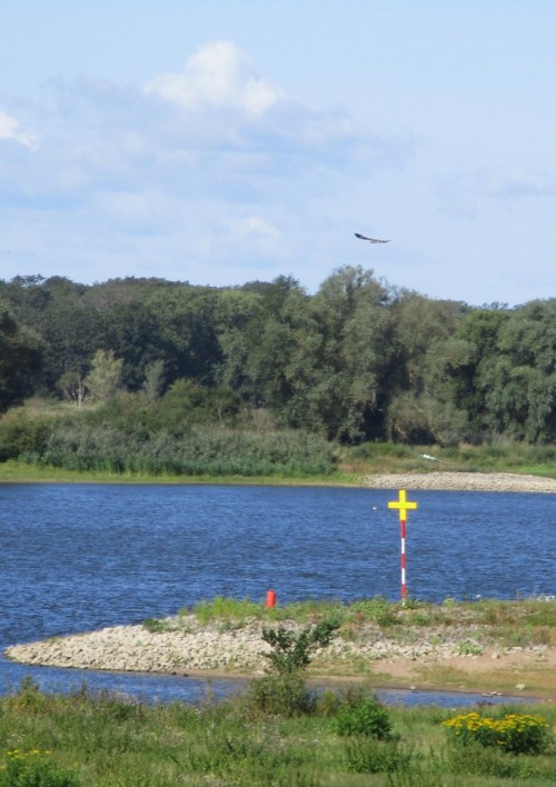 Der Strich am Himmel – wie verhext, nicht im Flugprofil von unten zu bannen – behaupte ich mal: ein Fischadler.