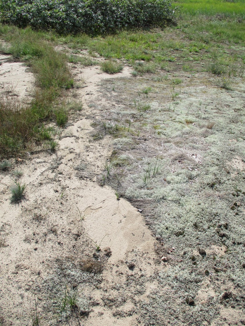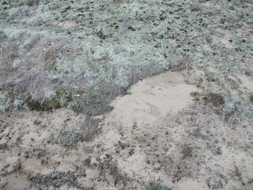 Warum auch immer – Befestigungen des Weges zu den Binnendünen wurden entfernt. „Schön“ kann der Sand erodieren, bei Befahren, Reiten uvm. zu einer tiefen, losen Schicht umgeformt werden …