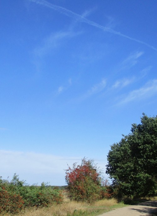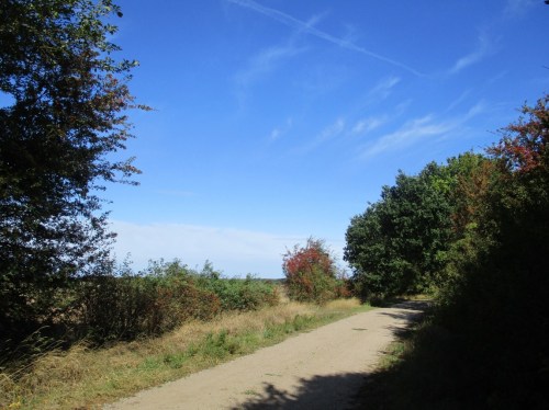 Wir biegen ab gen Norden, wählen einen Knick-bestandenen Agrarweg. Alles andere ist (Busch- und Baum)“frei“.