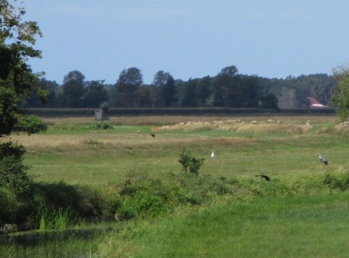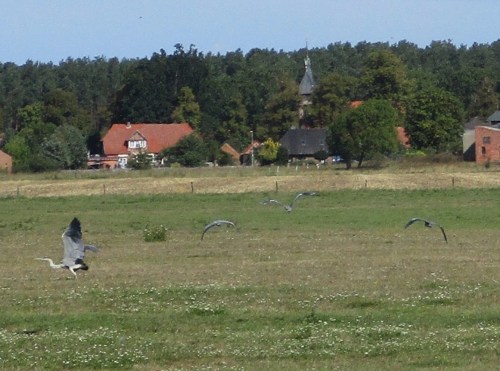 Nach einer Weile, ein Bisschen unscharf, sehen wir 3 Kraniche, einen Silberreiher und diverse Segler.