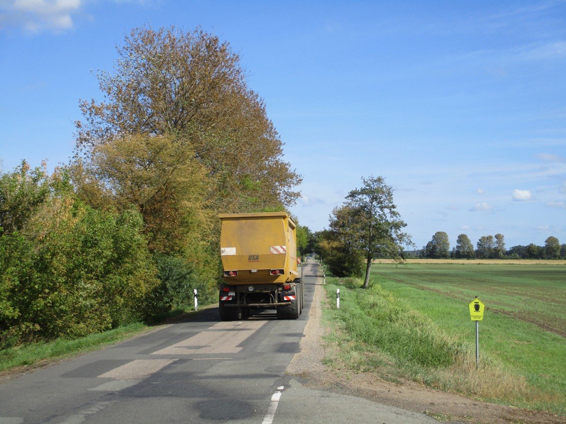 Wir befinden uns im Biosphärenreservat. IntensivÄcker bestimmen hier das Bild, die Maisernte ist in vollem Gang.