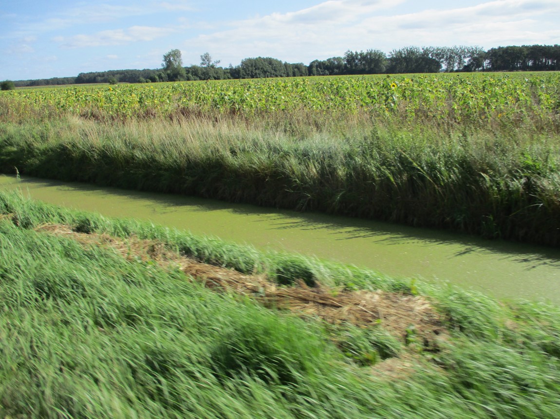 Deutsch-deutsche Agrarlandschaft. Die Rögnitz, Grenzfluss Nds-McPomm – Bäche zu erhitzten Entwässerungskanälen.