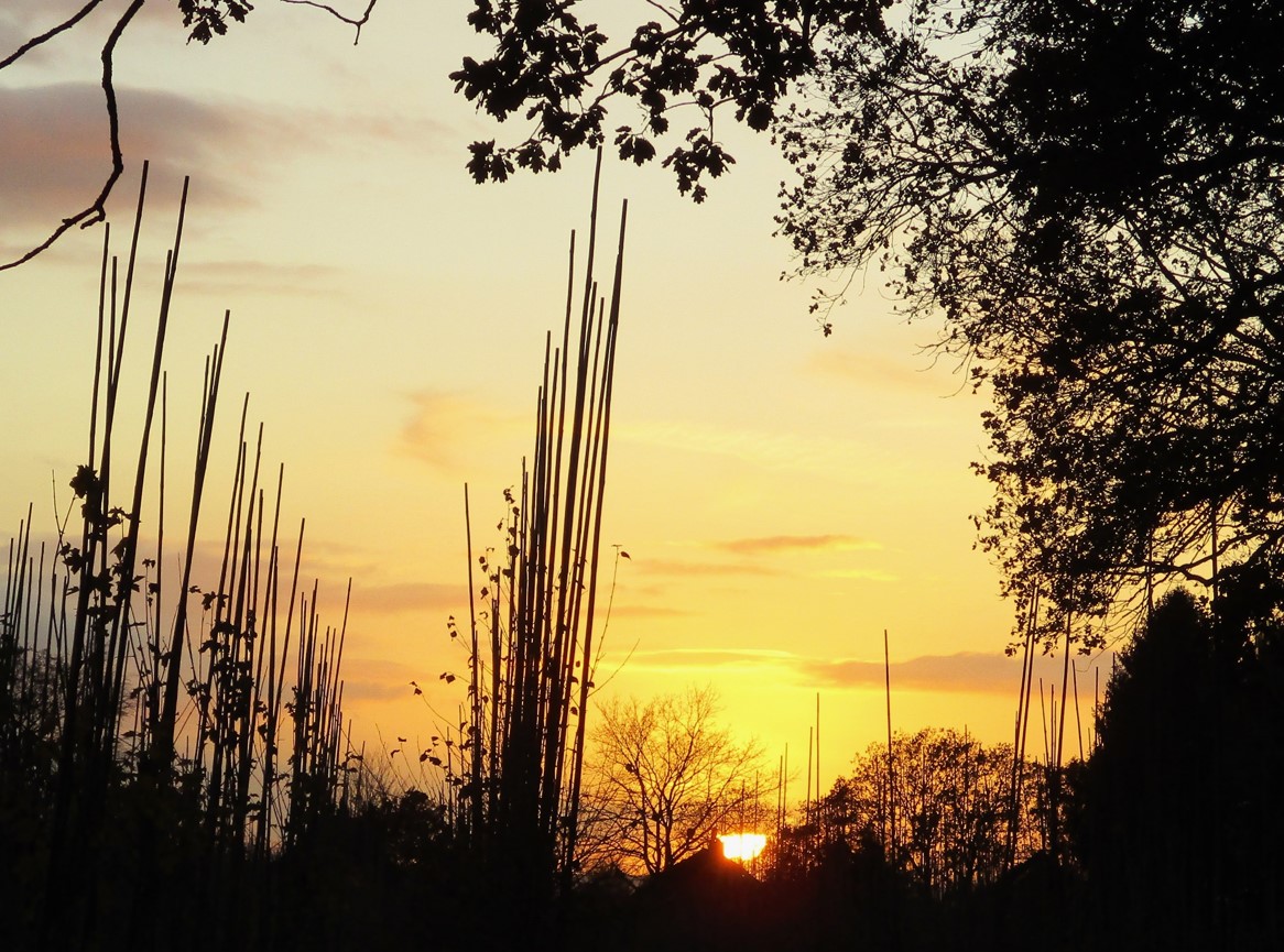 Saatlandsdamm, Blick mit der Sonne – seit einigen Tagen sind Gruppen von Wacholderdrosseln hier im Umfeld zu sehen. Bald wird die Zahl der Beeren schwinden.