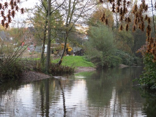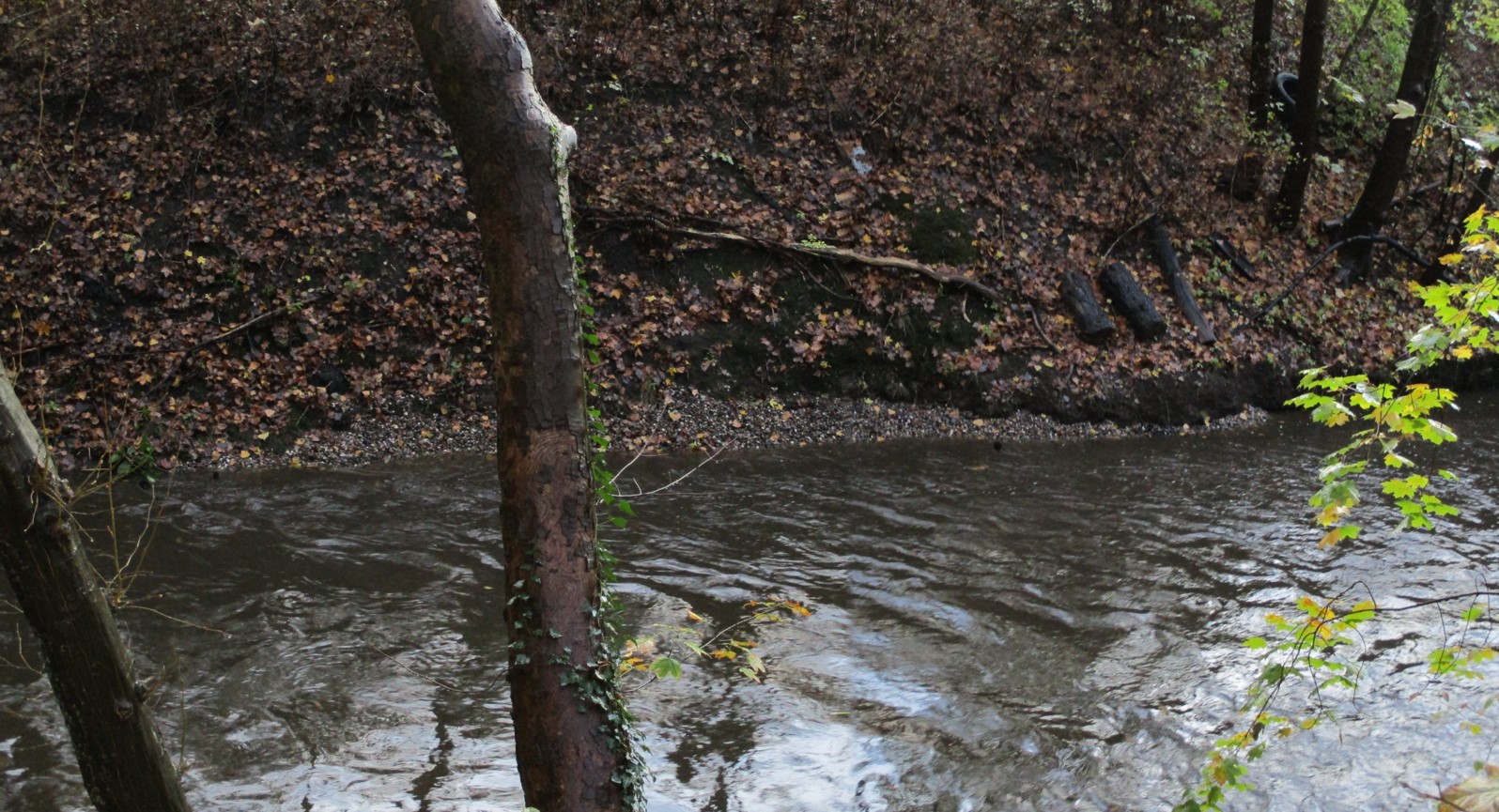 Wir nutzten die Anfahrt aber auch, um den Kies bei Mittelwasser plus ca. 25 cm bachauf der Mühlenau-Bahnquerung sowie entlang des B-Plans Mühlenau-Quartier anzusehen.