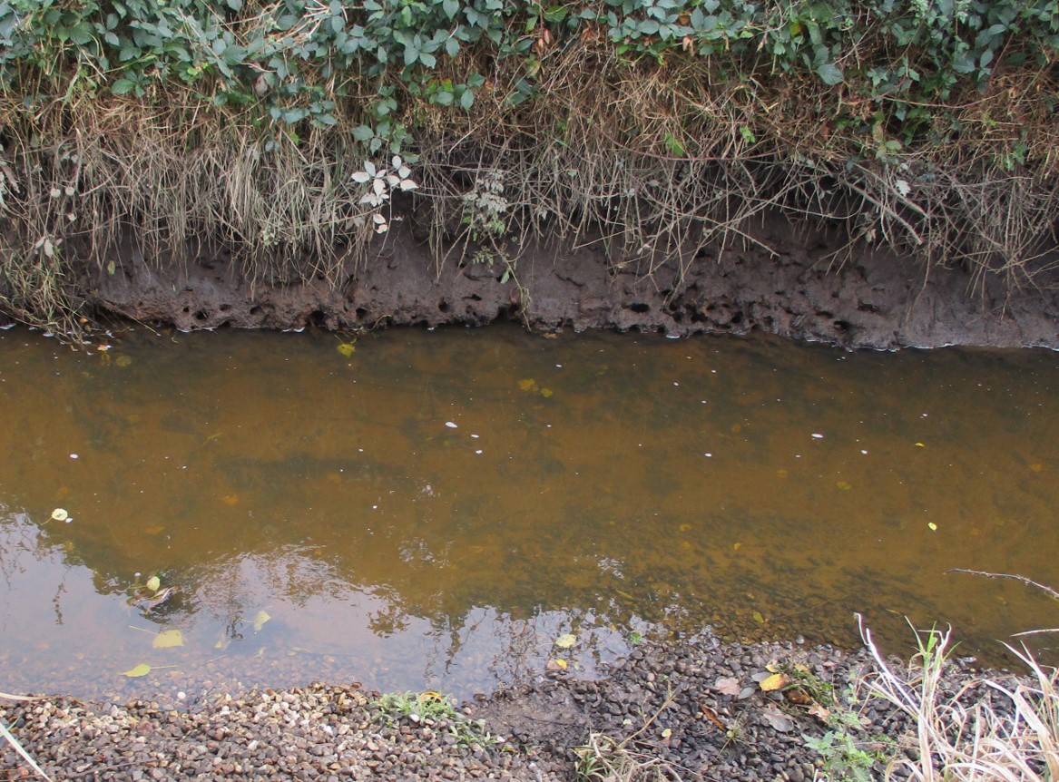 Was am Ohrtbrooksgraben auffällt: Im Ufer befinden sich unzählige „Löcher“, vermutlich Wohnröhren von Krebsen.