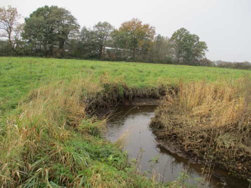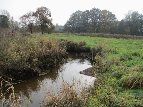 Blick bachauf vom derzeitgen Restaurierungsende – westlich benachbart wird ein Gewerbe-B-Plan gerade entwickelt.