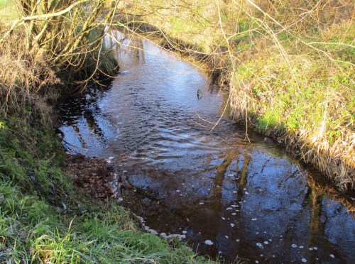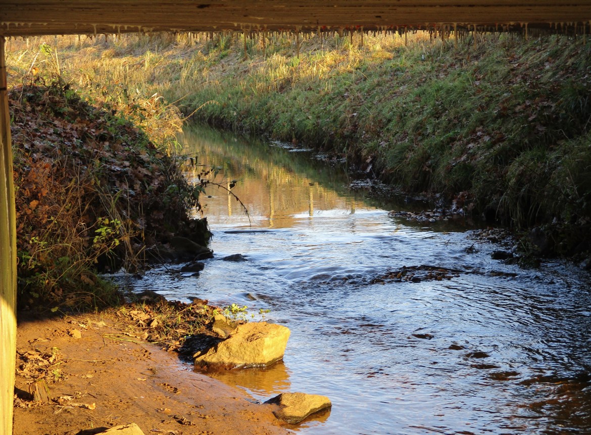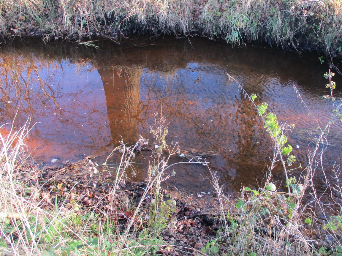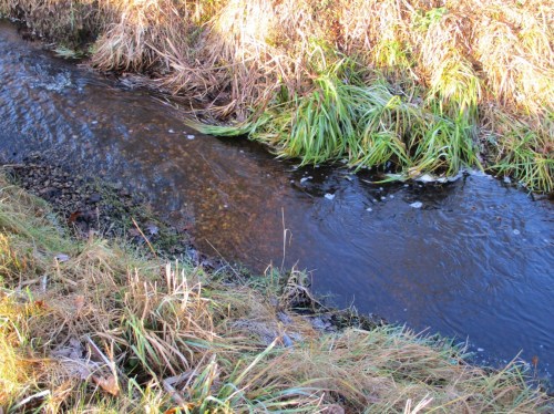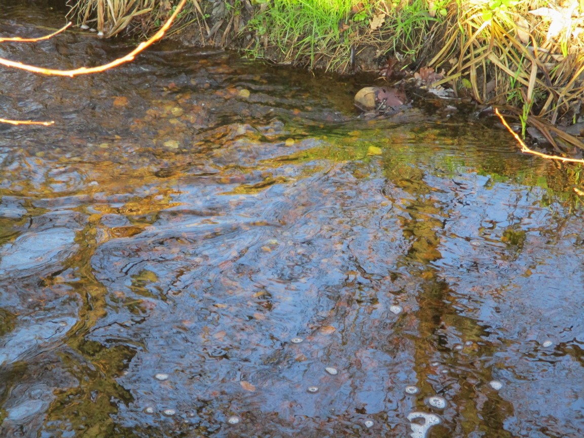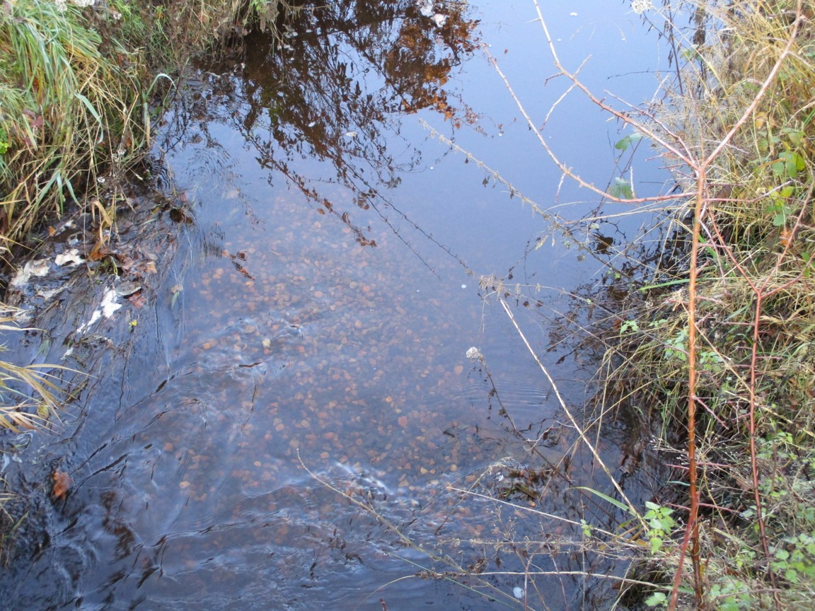 Auch am letzten Besuchspunkt, Blick bachauf, wurde gelaicht. Die Wasserführung ist während der vorigen Woche wieder unter Mittelwasser gefallen.