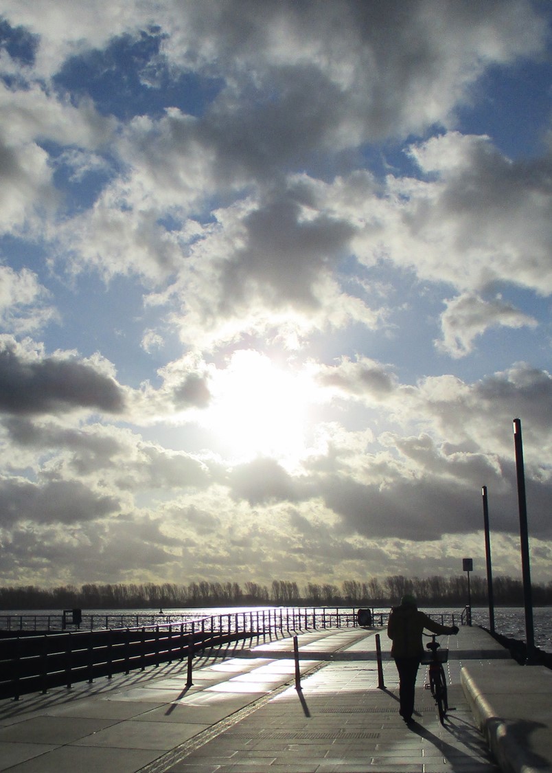 Helgolandstraße – immer schön auf seitliche Sturmböen achten. – Wir lieben den „Küstenhimmel“ mit fetzenden Wolken …