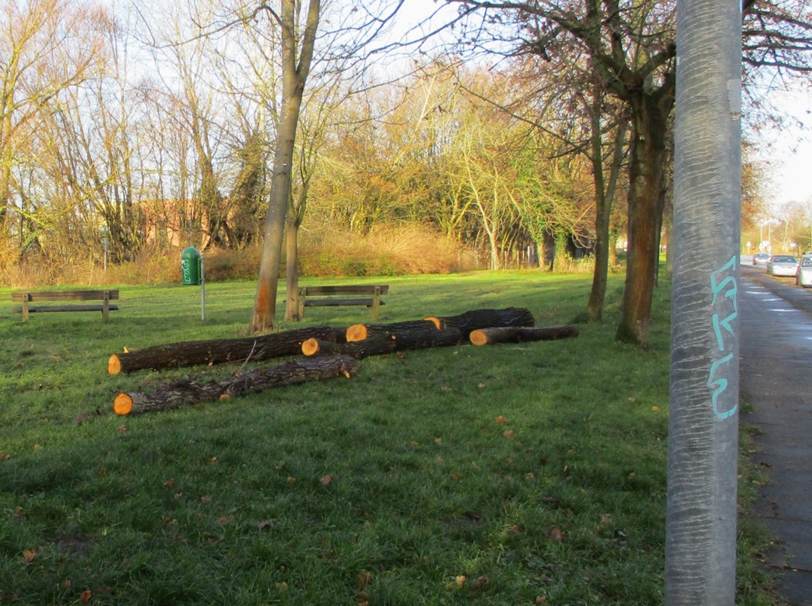 An der Schulauer Straße liegt ein völlig gesund aussehener Baum waagerecht in Stücken. Fridays for Future – man möchte sich weinend abwenden.