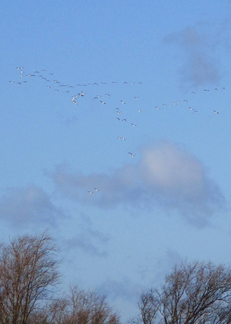 Da kreist ein Tausender-Nonnengansschwarm, landet aber nicht in der Nähe, teilt sich auf.