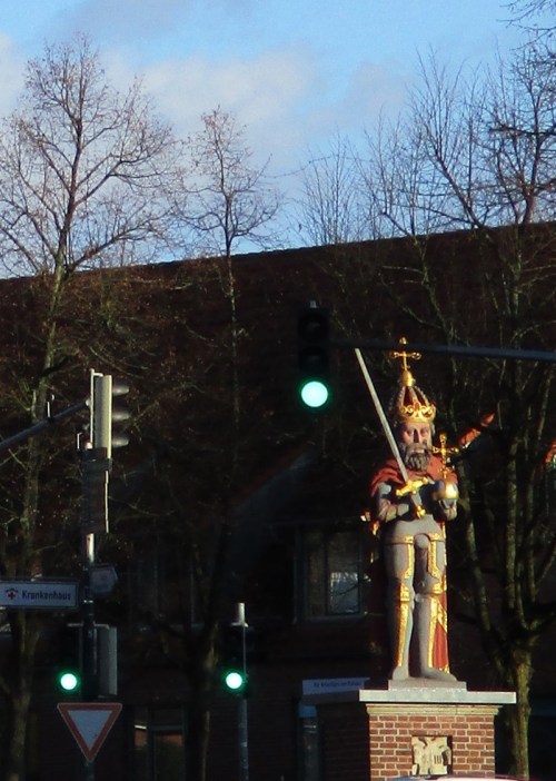 Leuchtend grüßt der Roland im Sonnenlicht.
