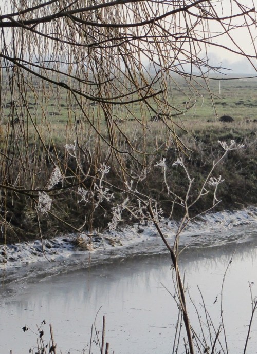 Im neuen Jahr war das nun schon zweimal der Fall. Im Folgenden bringe ich Fotos vom 2. und 5. Januar zusammen – das wird sicherlich an dem einen oder anderen Bruch zu erkennen sein. Am ersten Tag hatte es nachts gefroren, am zweiten sorgte immerhin kalter, ziehender Wind dafür, dass feuchte Stellen punktuell bis flächenhaft überfroren sein konnten. Ein Bisschen mehr Aufmerksamkeit als sowieso war also angebracht.