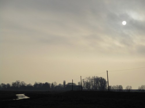 Schon ulkig, so eine Entwicklung an zwei Tagen an gleicher Stelle und in ähnlicher Geschwindigkeit – ich stelle das Fotografieren ein. Angesichts weniger Grad über Null sehe ich zu, nach Wedel zu kommen – halbwegs gegenwindwindfrei angesichts Baum-, Wald- und Knickpartien.