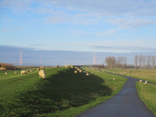 Meist fahre ich die Tour Wedel-Hetlingen „linksrum“, gegen den Uhrzeigersinn. Ich entscheide mich gelegentlich anders, wenn entsprechende Windrichtungen und / oder -stärken mich veranlassen, Gegenwind hinter dem Deich zu vermeiden.