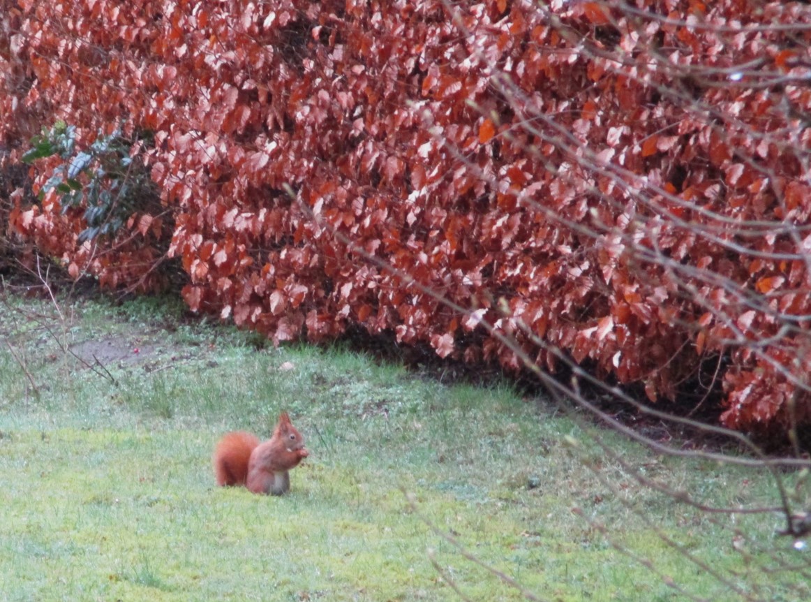 Eichhörnchen sind gelegentlich hier im Blog zu sehen. Soweit es sich um Beiträge hausnah handelt, kein Wunder – ein Nachbar füttert mit Hasel- und Walnüssen (die Schösslinge vergrabener, nicht verspeister Nüsse reissen wir dann möglichst fix aus – Haselnussbüsche sind inzwischen zahlreich genug, einen Walnussbaum können wir aufgrund mangelnder Fläche nicht akzeptieren).