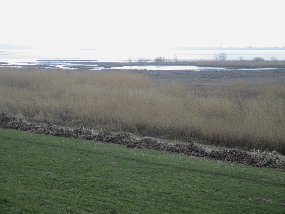 Auf dem Süßwasserwatt steht weiterhin viel Röhricht vom Vorjahr. Die Spülsaumräumsaison zieht sich weiter.