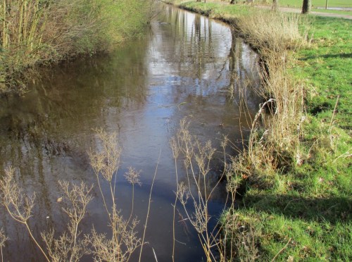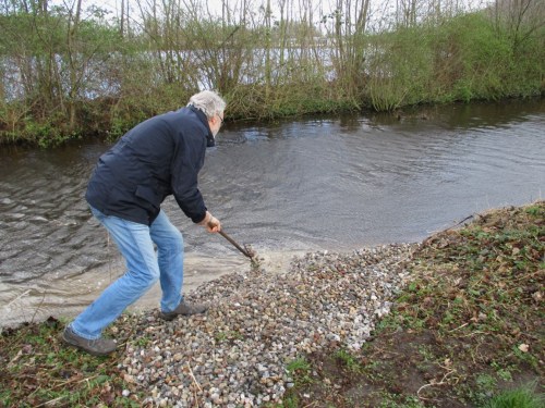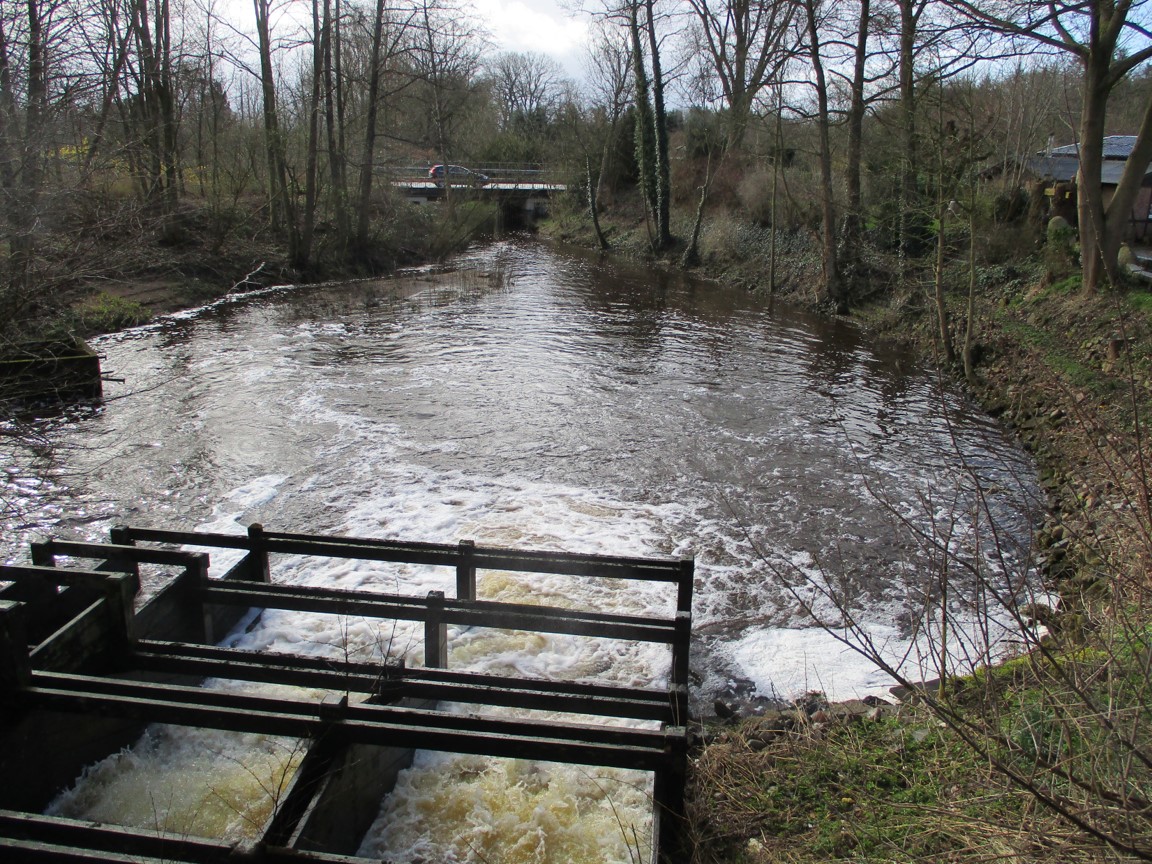 Das Wehr wird geöffnet, um zu sehen, wie der Unterwasserkies liegt, ob er „auftaucht“. Ich gehe bachauf, um die 5 ersten Stellen querab Wellenbad Barmstedt darauf anzusehen und die Unterwasserkiese etwa 10 cm tiefer zu schieben (vgl. Ende Beitrag vom 10. März). Darüber gebe ich demnächst einen kleinen Eindruck.