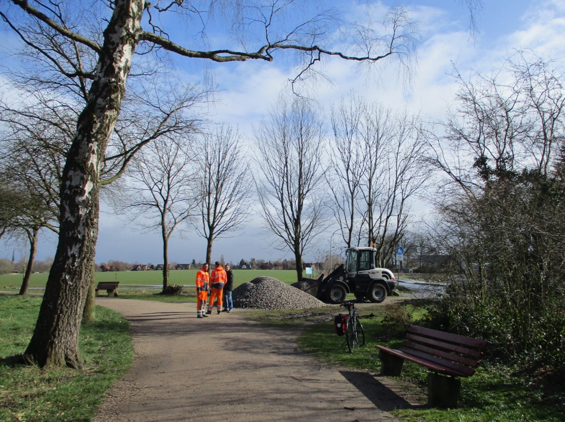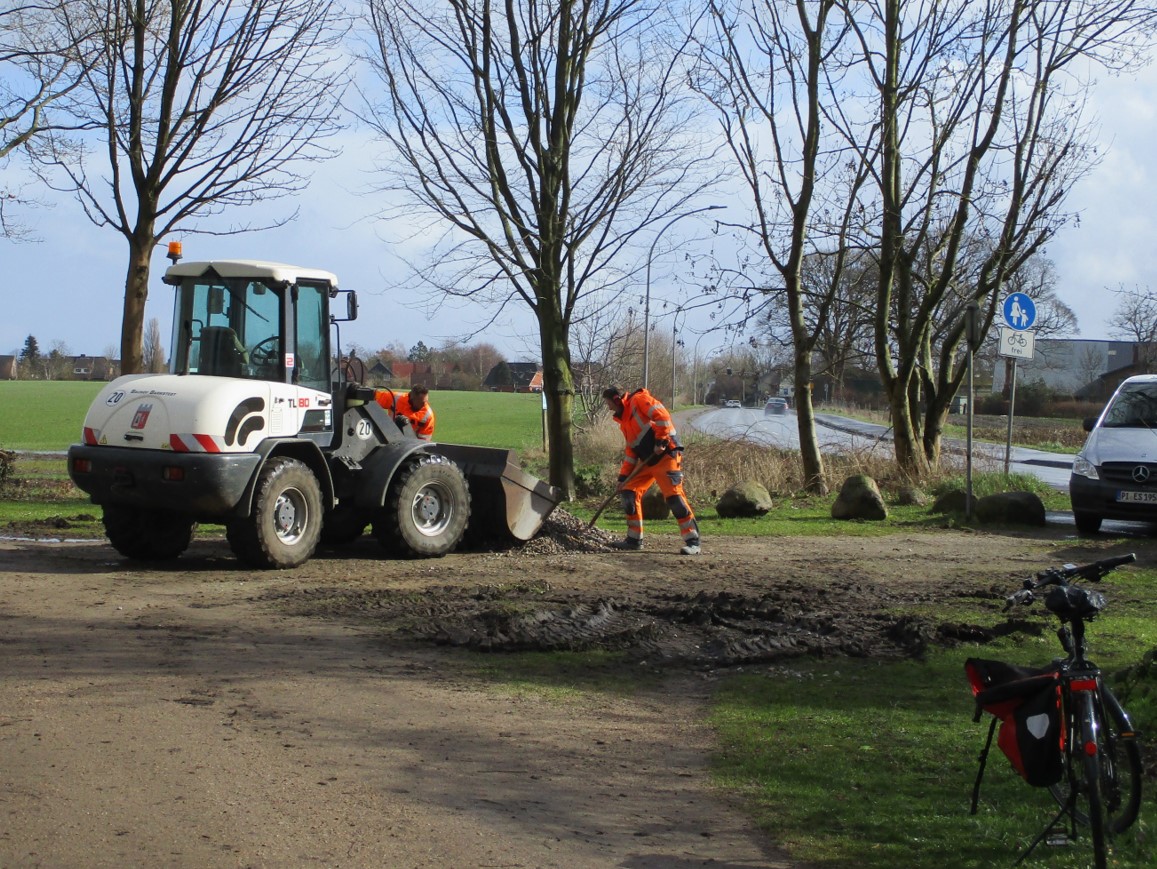 Angesichts der Entfernung zwischen Punkt 1 und dem Endpunkt haben wir angesichts des Kurvenverlaufs spontan entschieden, nicht die 3 vereinbarten Stellen, sondern 4 zu bekiesen.