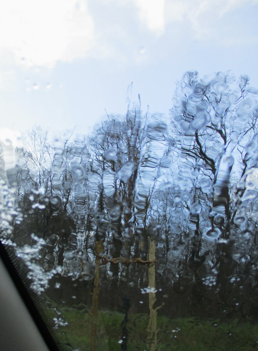 Vor dem Anlassen: Feingraupel und Regen decken das Auto ein. Der Wechsel von Watstiefel auf Schuhe fand noch bei Sonnenschein statt. 🙂