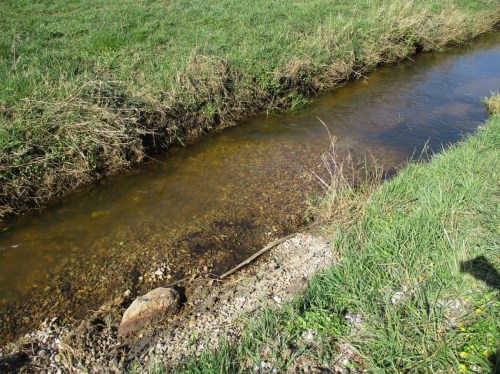 Wo Kies, zugegeben oder durch Strömungsverbesserung freigelegt, ein standorttypisches Bachbett schafft, siedeln sich standorttypische Wasserpflanzen wie der Aufrechte Merk (die Berle, links oben im Foto) und der Wasserstern erfolgreich wieder an.