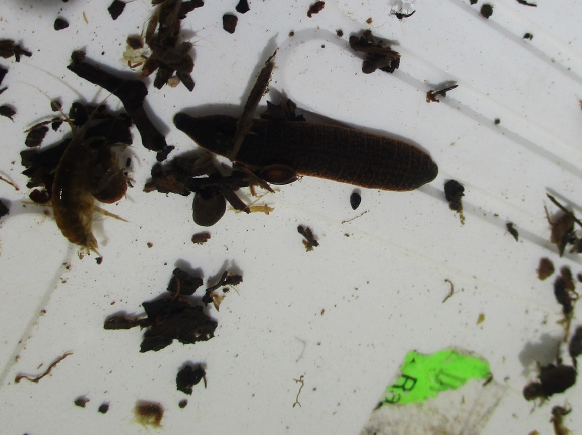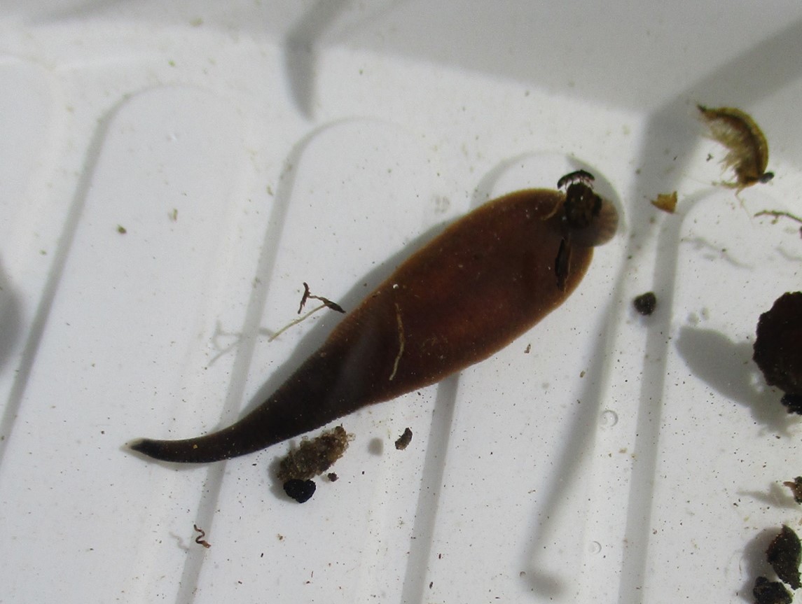 Schnell dreht sich der Egel, ein Rollegel, um. Leider ist auf den Fotos die feine streifige Rückenfärbung nicht zu erkennen.