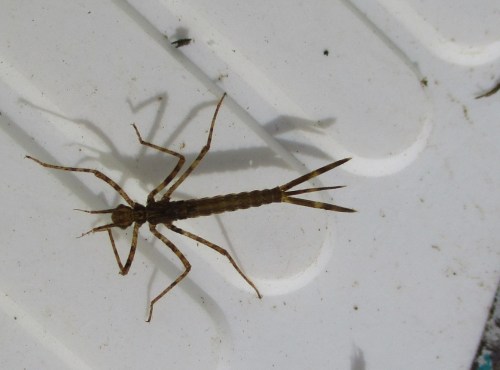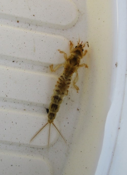 Bei Beprobung des Feinkieses am Bachgrund tauchen dann noch etliche Exemplare der Großen Maifliege Ephemera auf. Auch die lassen Ende Mai bis in den Juni interessante Hochzeitsflüge erwarten.