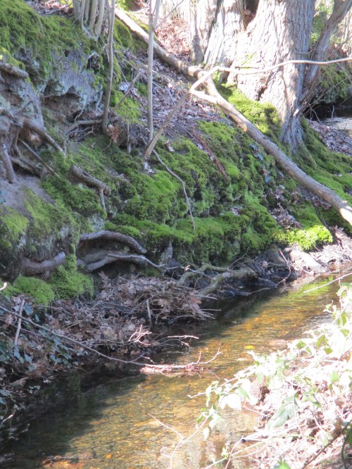 Kurz vor dem Verlassen der Geest, Hangrunterrasen in die Marsch, gucke ich in den / die Sauerbe(c)k – womöglich fällt der Bach bis Ende April schon trocken.