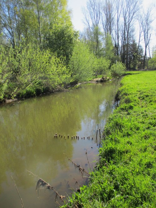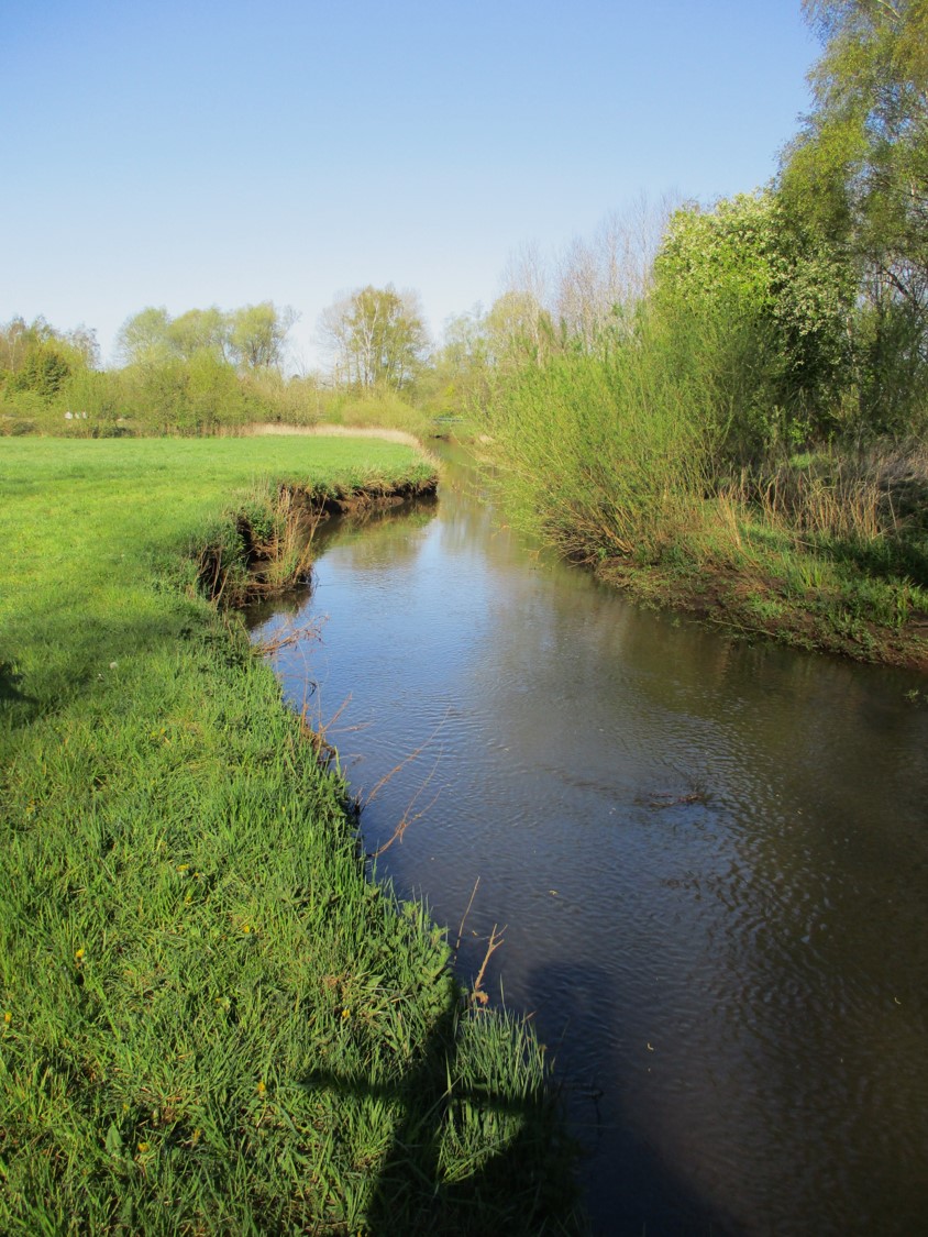 So stellt sich die Wiese gestern dar. Sie ist vom Flächennutzer vorbereitet für die Wachstumssaison, wir können die Krückau trockenen Fußes erreichen.