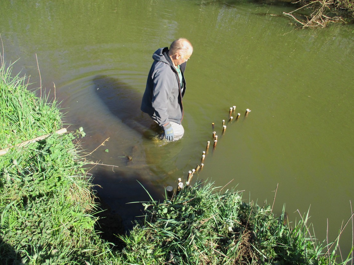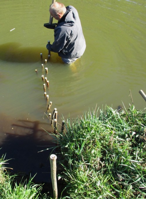 „33 ? – seh ich nicht auf den Fotos!“ – Das liegt daran, dass 10-15 dicht an dicht in den Uferbereich geklopft wurden, um ein Umströmen auszuschliessen.