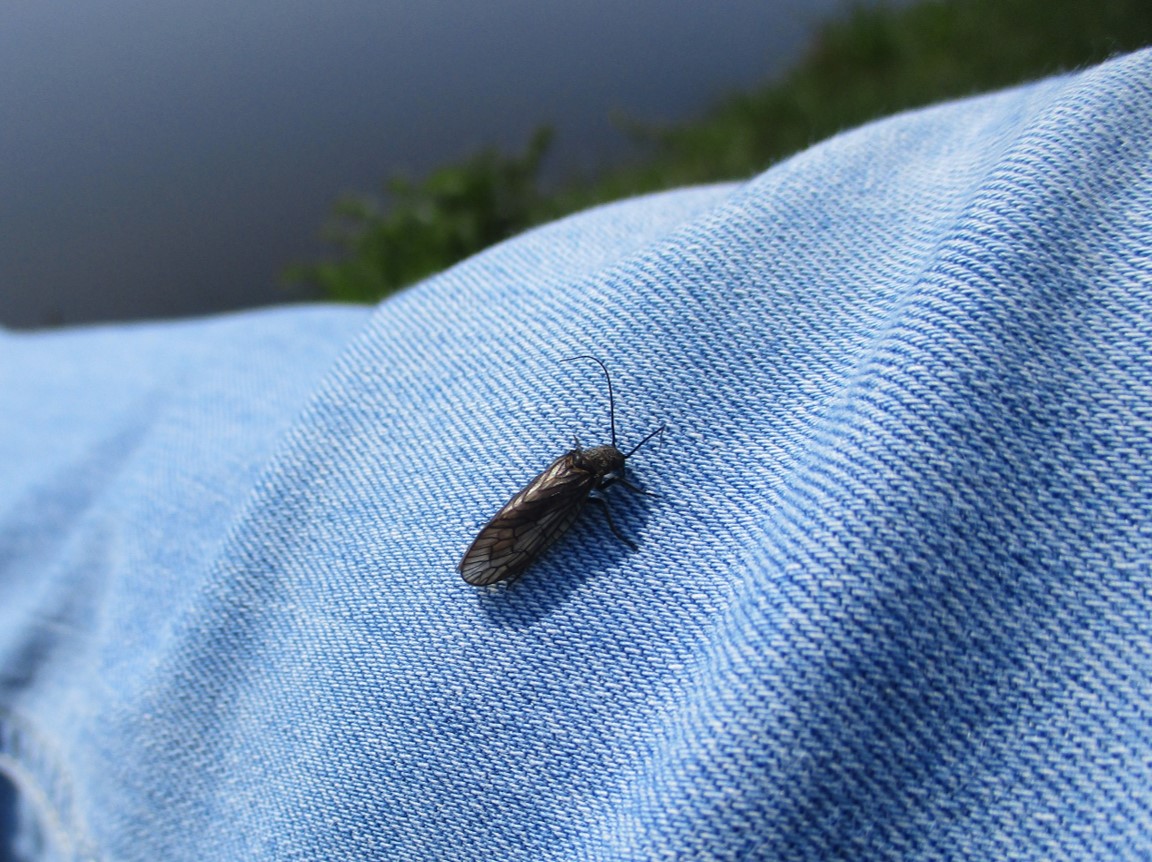 Es wimmelt wirklich. Wenn der Blick erst geschärft ist: überall Schlammfliegen in Hochzeitsstimmung. Da freuen sich Vögel und Fische.