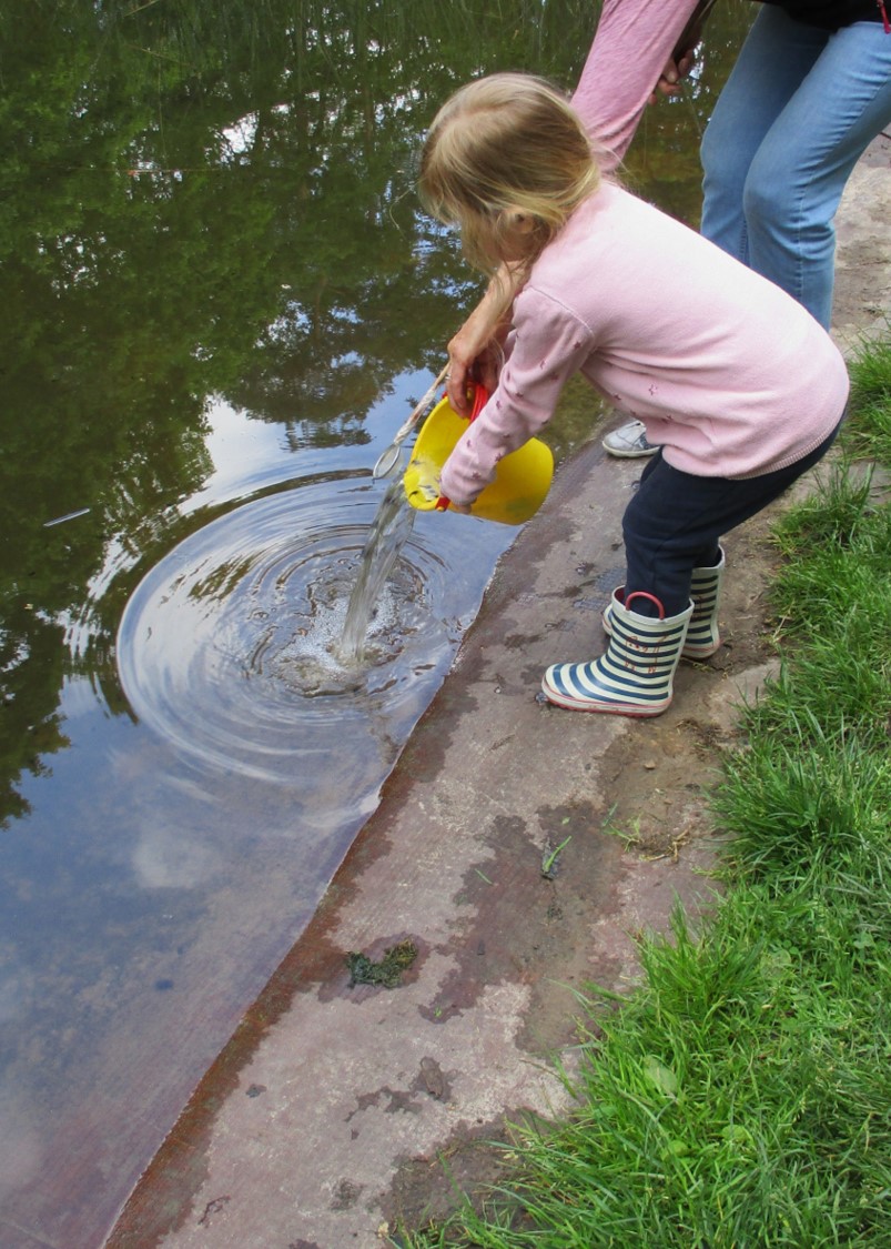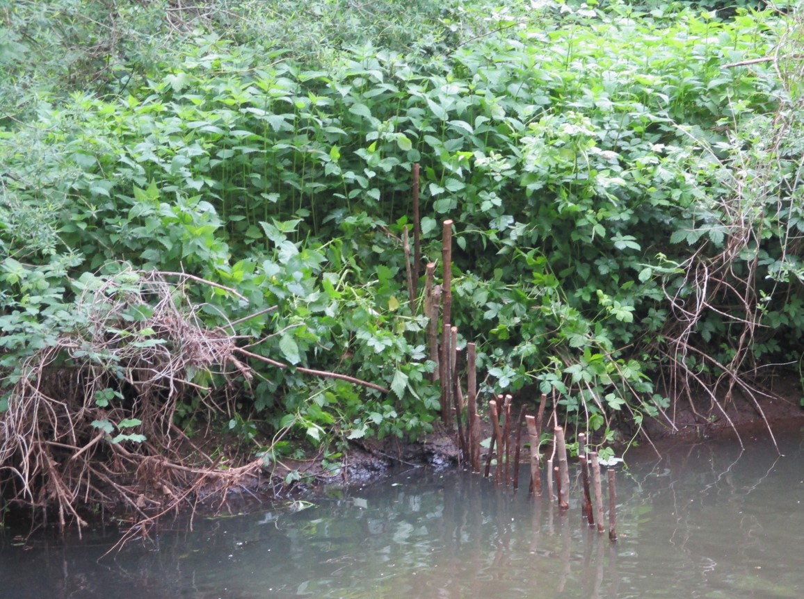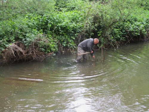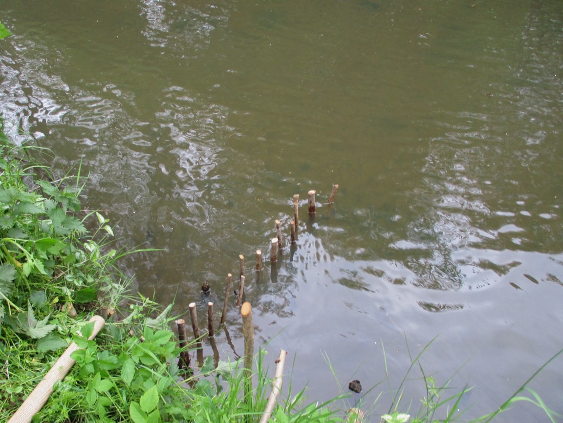 Von unter Wasser liegenden, angetriebenen Ästen schüttelt die Fängerin unter anderem Eintagsfliegenlarven ab.