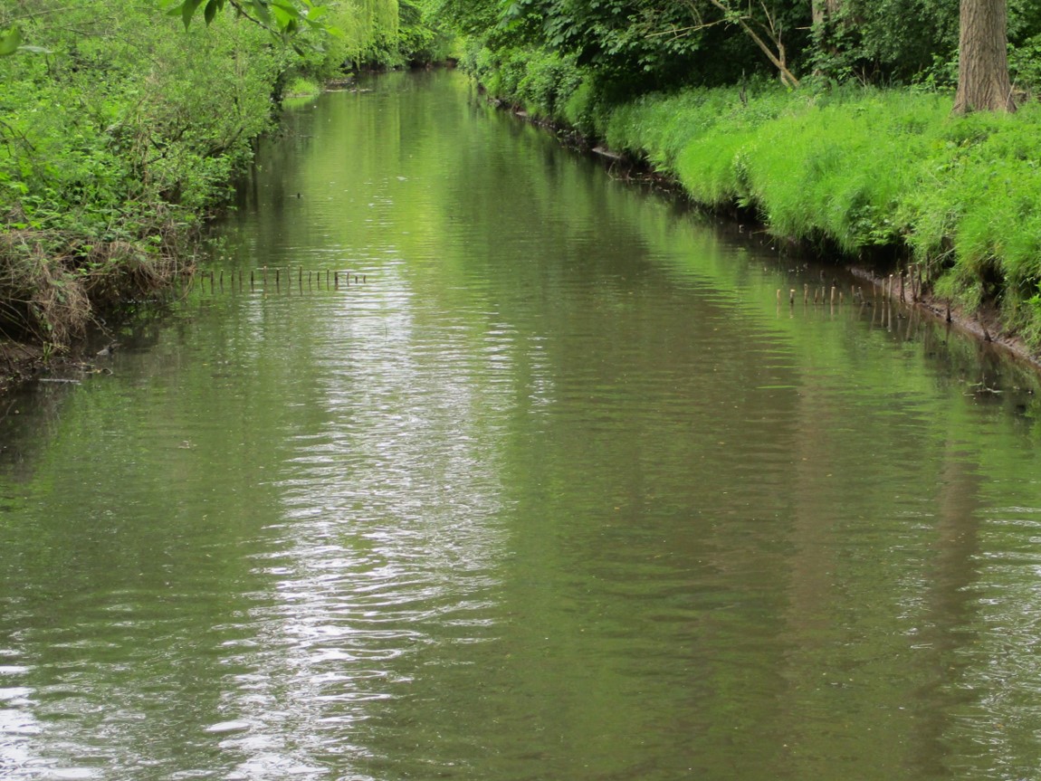 Wir parken im Sandmoorweg an der Querung mit der Wedeler Au. Auch 2020 hat der Bach im Mai bereits extrem geringen Abfluss.