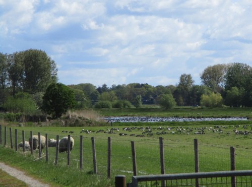 Das sind keine Schwimmblattpflanzen auf dem Kleisee an der NABU-Vogelstation – Massen Nonnengänse bevölkern Wasser- und Marschwiesenfläche.