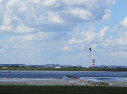 Schönes Frühlingswetter, morgenkühl bei stärkerem Nordwind – für „gut Rückenwind“ hinter dem Elbe-Hauptdeich radele ich mal wieder die Tour Wedel – Holm – Hetlingen – Wedel.